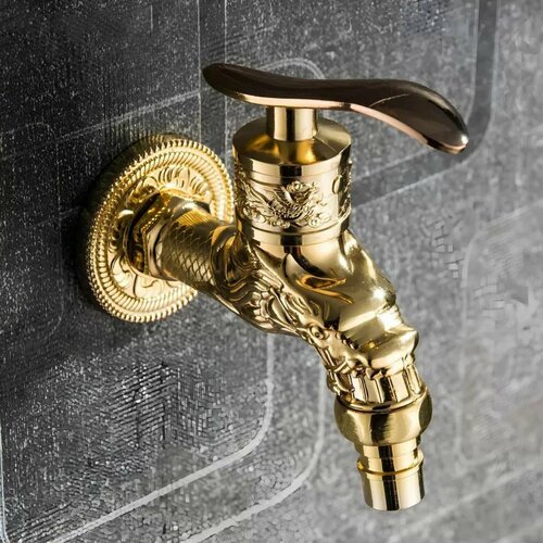 Кран для бани водоразборный на 1/2", 10 см от стены, со штуцером, под золото