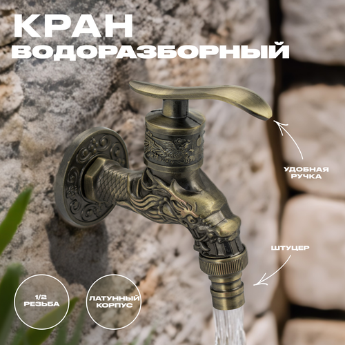 Кран водоразборный на 1/2", 10 см от стены, металлокерамика, со штуцером, под бронзу