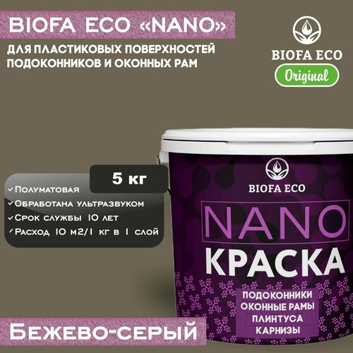 Краска BIOFA ECO NANO для пластиковых подоконников и оконных рам, плинтусов и наличников, полуматовая, цвет бежево-серый, 5 кг