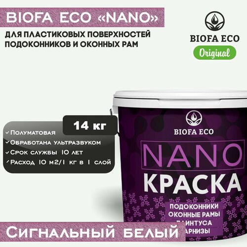 Краска BIOFA ECO NANO для пластиковых подоконников и оконных рам, плинтусов и наличников, полуматовая, сигнальный, 14 кг