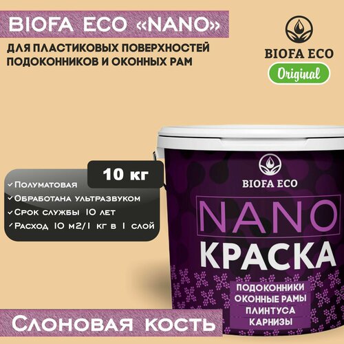 Краска BIOFA ECO NANO для пластиковых подоконников и оконных рам, плинтусов и наличников, полуматовая, цвет слоновая кость, 10 кг