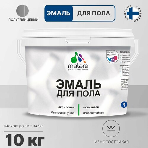 Эмаль Malare для пола акриловая, экологичная без запаха, износостойкая, быстросохнущая, моющаяся, полуглянцевая, алое танго, 10 кг.
