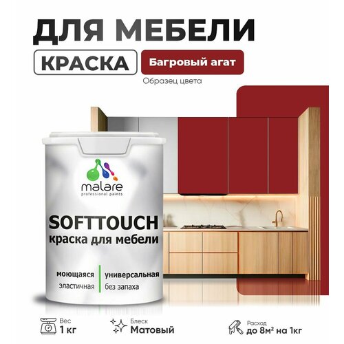 Акриловая краска для мебели Malare SoftTouch для кухонных фасадов для дерева и МДФ, моющаяся быстросохнущая, матовая, багровый агат, 1 кг.