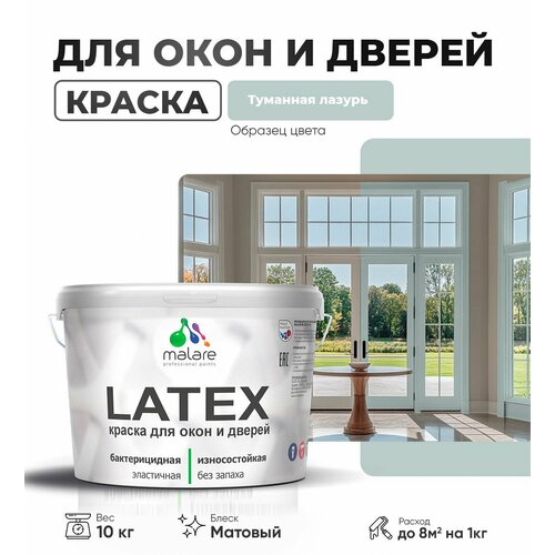 Краска акриловая (АК) Malare для окон, дверей и любых деревянных поверхностей влагостойкая моющаяся матовая туманная лазурь 10 кг