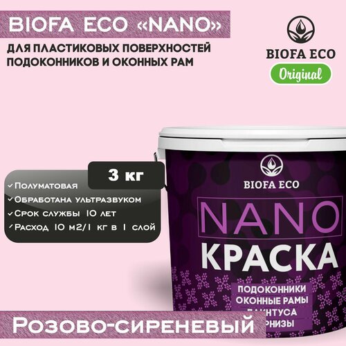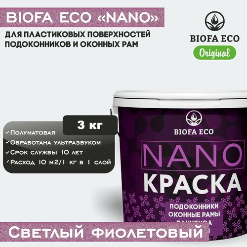 Краска BIOFA ECO NANO для пластиковых подоконников и оконных рам, плинтусов и наличников, полуматовая, цвет светлый фиолетовый, 3 кг
