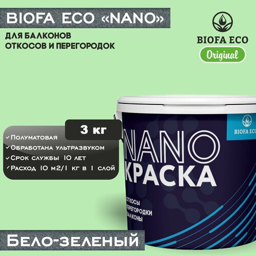 Краска BIOFA ECO NANO для балконов, откосов и перегородок, цвет бело-зеленый, 3 кг