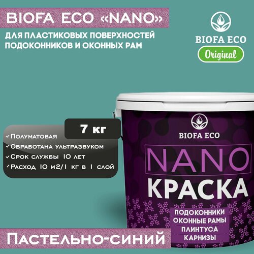 Краска BIOFA ECO NANO для пластиковых подоконников и оконных рам, плинтусов и наличников, полуматовая, цвет пастельно-синий, 7 кг