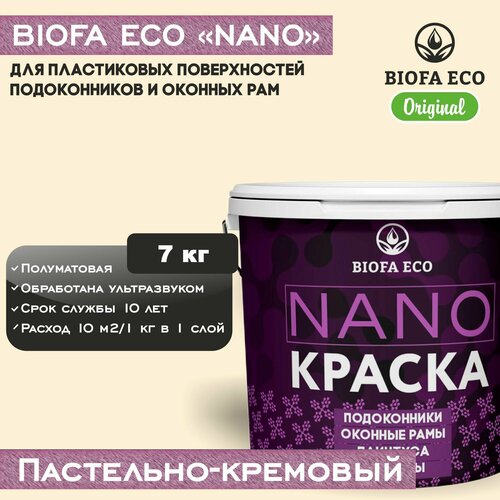 Краска BIOFA ECO NANO для пластиковых подоконников и оконных рам, плинтусов и наличников, полуматовая, цвет пастельно-кремовый, 7 кг