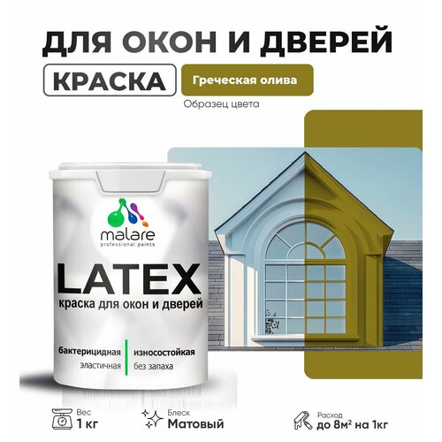 Краска акриловая (АК) Malare для окон, дверей и любых деревянных поверхностей влагостойкая моющаяся матовая греческая олива 1 кг