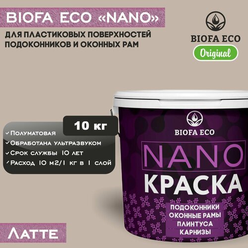 Краска BIOFA ECO NANO для пластиковых подоконников и оконных рам, плинтусов и наличников, полуматовая, цвет латте, 10 кг