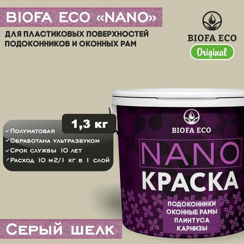 Краска BIOFA ECO NANO для пластиковых подоконников и оконных рам, плинтусов и наличников, полуматовая, цвет серый шелк, 1,3 кг