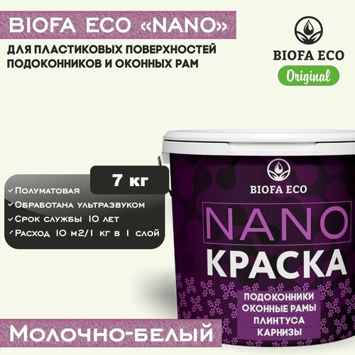 Краска BIOFA ECO NANO для пластиковых подоконников и оконных рам, плинтусов и наличников, полуматовая, цвет молочно-белый, 7 кг