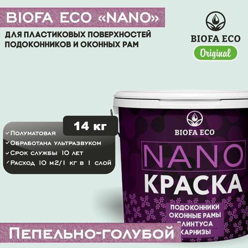 Краска BIOFA ECO NANO для пластиковых подоконников и оконных рам, плинтусов и наличников, полуматовая, цвет пепельно-голубой, 14 кг