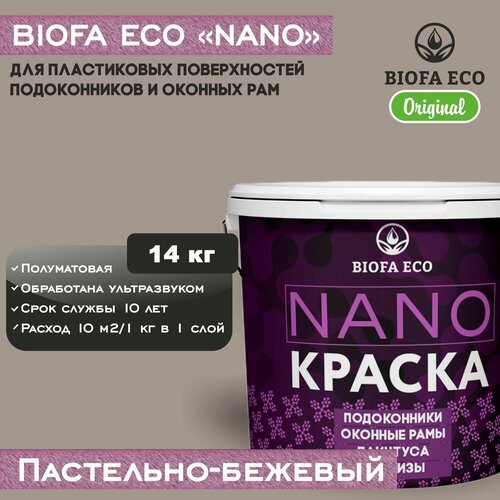 Краска BIOFA ECO NANO для пластиковых подоконников и оконных рам, плинтусов и наличников, полуматовая, цвет пастельно-бежевый, 14 кг