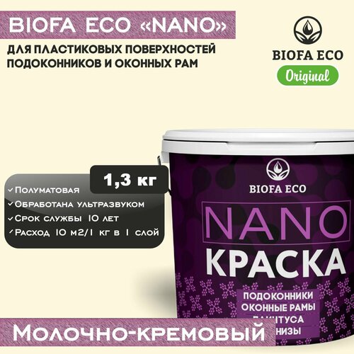 Краска BIOFA ECO NANO для пластиковых подоконников и оконных рам, плинтусов и наличников, полуматовая, цвет молочно-кремовый, 1,3 кг