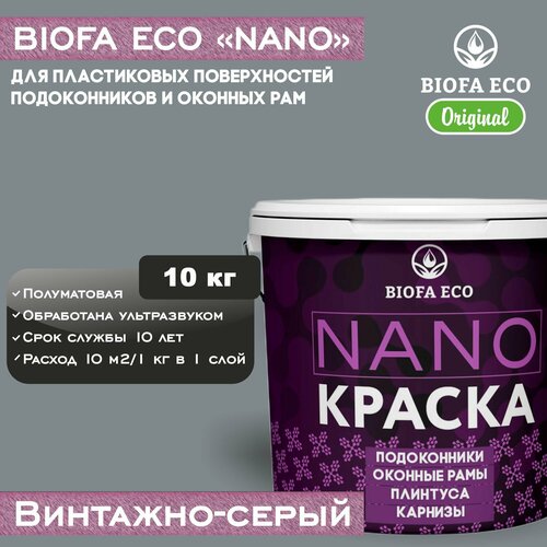 Краска BIOFA ECO NANO для пластиковых подоконников и оконных рам, плинтусов и наличников, полуматовая, цвет винтажно-серый, 10 кг