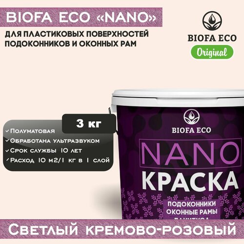 Краска BIOFA ECO NANO для пластиковых подоконников и оконных рам, плинтусов и наличников, полуматовая, цвет светлый кремово-розовый, 3 кг