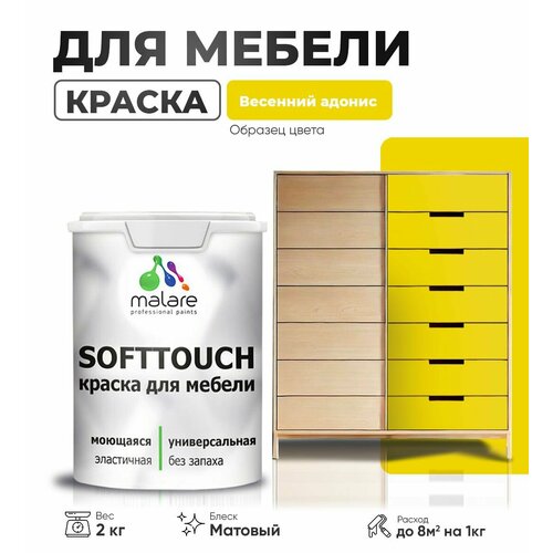 Акриловая краска для мебели Malare SoftTouch для кухонных фасадов для дерева и МДФ, моющаяся быстросохнущая, матовая, весенний адонис, 2 кг.