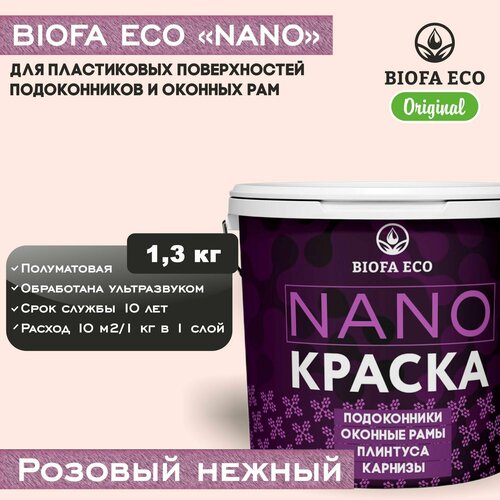 Краска BIOFA ECO NANO для пластиковых подоконников и оконных рам, плинтусов и наличников, полуматовая, цвет розовый нежный, 1,3 кг