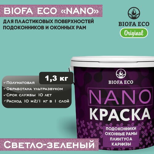 Краска BIOFA ECO NANO для пластиковых подоконников и оконных рам, плинтусов и наличников, полуматовая, цвет светло-зеленый, 1,3 кг
