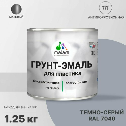 Грунт-Эмаль, Краска Malare 3 в 1 для пластика, окон и подоконников, сайдинга, быстросохнущая, матовый, темно-серый, 1,25 кг.