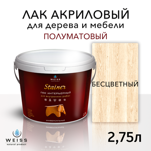 Лак для дерева акриловый, полуматовый, Weiss natural product, без запаха, самовыравнивающийся, 2.75л