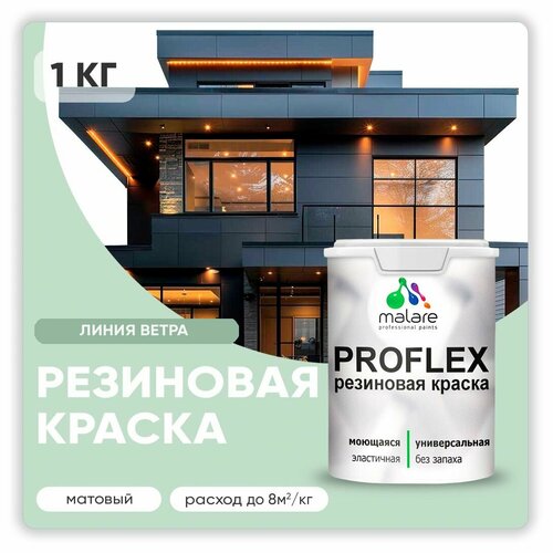 Универсальная резиновая краска Malare ProfleX для мебели, интерьера, фасадов, кровли, цоколей, быстросохнущая, матовая, линия ветра, 1 кг.