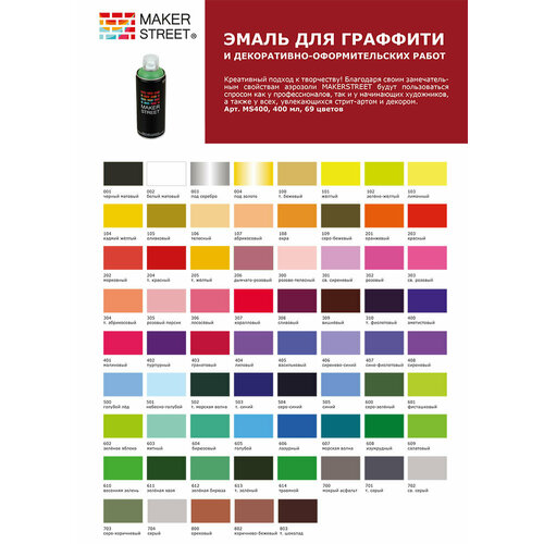 MAKERSTREET' Эмаль для граффити и декоративно-оформительских работ MS400 400 мл цвет 606 Лазурный
