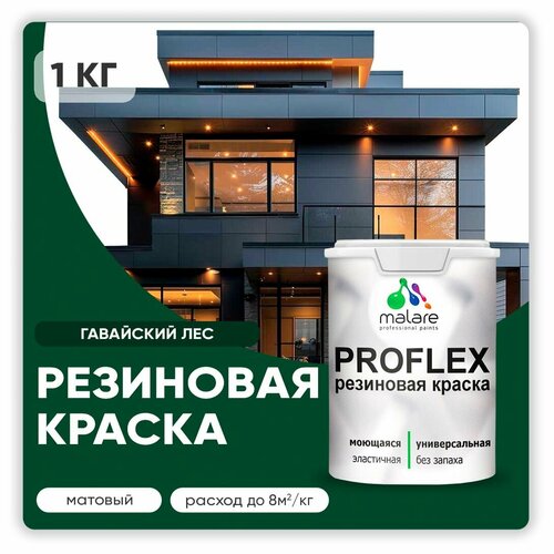 Универсальная резиновая краска Malare ProfleX для мебели, интерьера, фасадов, кровли, цоколей, быстросохнущая, матовая, гавайский лес, 1 кг.