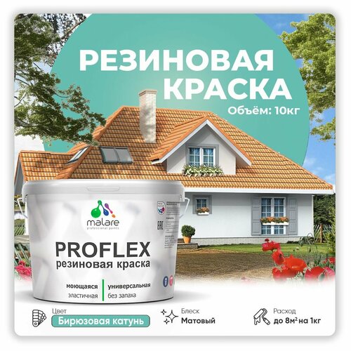 Универсальная резиновая краска Malare ProfleX для мебели, интерьера, фасадов, кровли, цоколей, быстросохнущая, матовая, ниагара, 10 кг.
