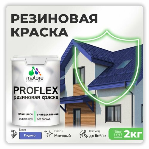 Универсальная резиновая краска Malare ProfleX для мебели, интерьера, фасадов, кровли, цоколей, быстросохнущая, матовая, индиго, 2 кг.