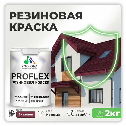 Универсальная резиновая краска Malare ProfleX для мебели, интерьера, фасадов, кровли, цоколей, быстросохнущая, матовая, византия, 2 кг.