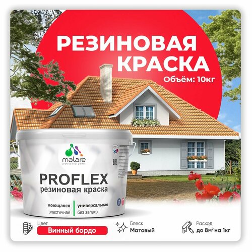 Универсальная резиновая краска Malare ProfleX для мебели, интерьера, фасадов, кровли, цоколей, быстросохнущая, матовая, винный бордо, 10 кг.