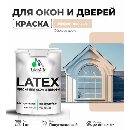 Резиновая краска для дверей и окон Malare Latex по дереву с антисептическим эффектом/ быстросохнущая моющаяся без запаха полуглянцевая, белый, 1 кг