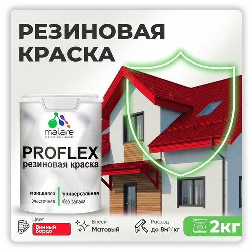 Универсальная резиновая краска Malare ProfleX для мебели, интерьера, фасадов, кровли, цоколей, быстросохнущая, матовая, винный бордо, 2 кг.