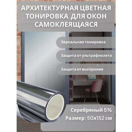 Архитектурная солнцезащитная тонировка для окон, цвет серебро 5%. Размер 152 см * 50 см