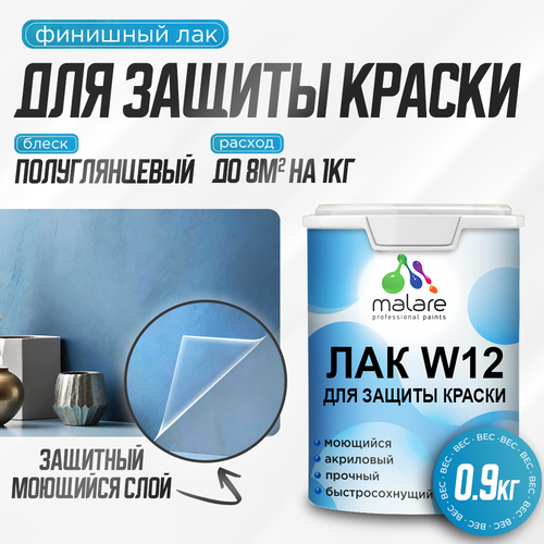 Лак для защиты акриловых красок Malare моющийся универсальный быстросохнущий экологичный, полуглянцевый, 0.9 кг