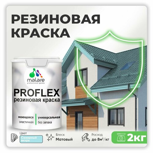 Универсальная резиновая краска Malare ProfleX для мебели, интерьера, фасадов, кровли, цоколей, быстросохнущая, матовая, сахарный вихрь, 2 кг.