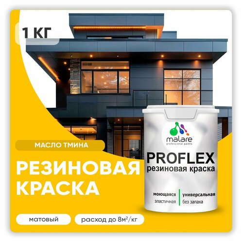 Универсальная резиновая краска Malare ProfleX для мебели, интерьера, фасадов, кровли, цоколей, быстросохнущая, матовая, масло тмина, 1 кг.
