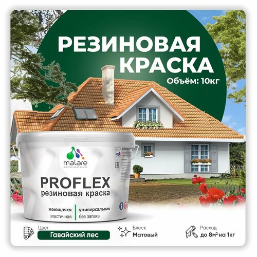 Универсальная резиновая краска Malare ProfleX для мебели, интерьера, фасадов, кровли, цоколей, быстросохнущая, матовая, гавайский лес, 10 кг.