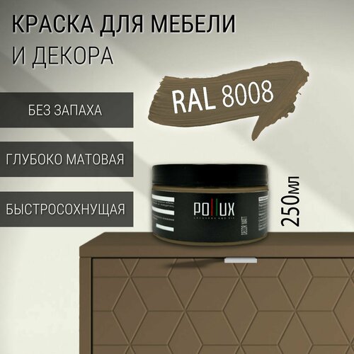 Краска для мебели без запаха матовая быстросохнущая для кухни / дерева / декора акриловая Pollux Decor Matt, объем 0,25л, цвет оливково-коричневый (RAL 8008)