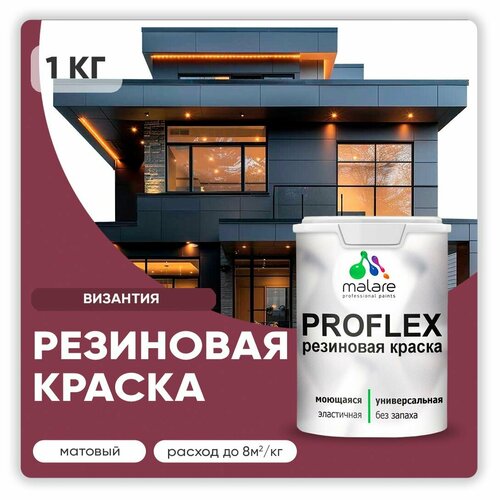 Универсальная резиновая краска Malare ProfleX для мебели, интерьера, фасадов, кровли, цоколей, быстросохнущая, матовая, византия, 1 кг.