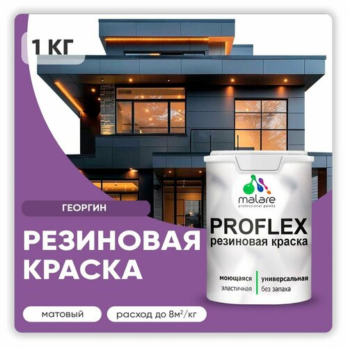 Универсальная резиновая краска Malare ProfleX для мебели, интерьера, фасадов, кровли, цоколей, быстросохнущая, матовая, георгин, 1 кг.