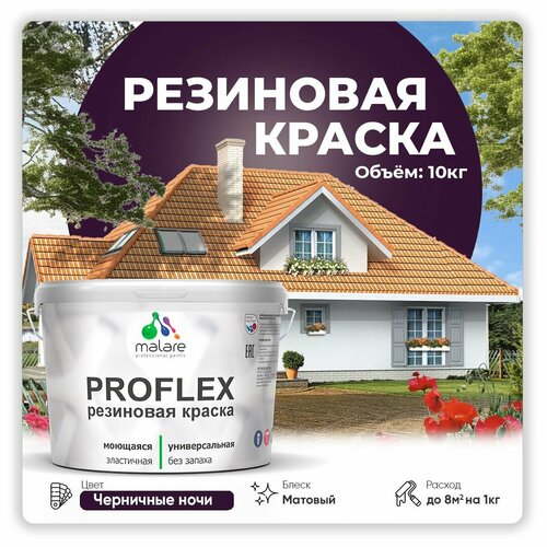 Универсальная резиновая краска Malare ProfleX для мебели, интерьера, фасадов, кровли, цоколей, быстросохнущая, матовая, черничные ночи, 10 кг.
