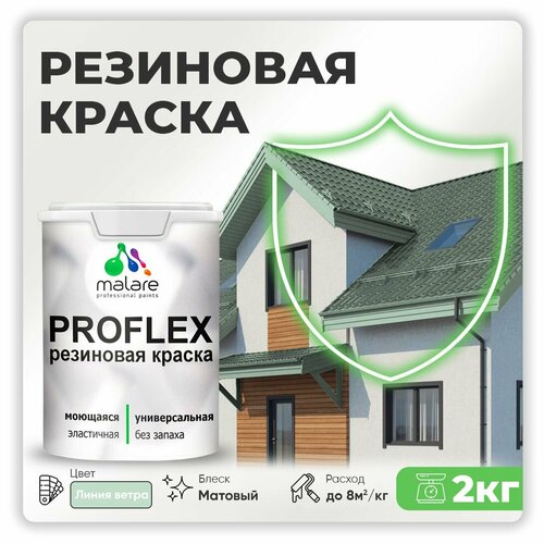 Универсальная резиновая краска Malare ProfleX для мебели, интерьера, фасадов, кровли, цоколей, быстросохнущая, матовая, линия ветра, 2 кг.