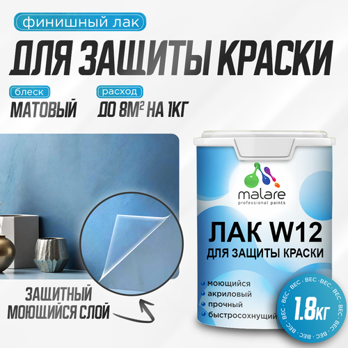 Лак для защиты акриловых красок Malare моющийся универсальный быстросохнущий экологичный, матовый, 1,8 кг