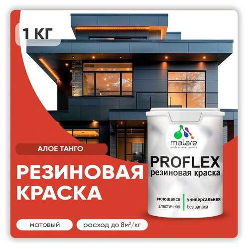 Универсальная резиновая краска Malare ProfleX для мебели, интерьера, фасадов, кровли, цоколей, быстросохнущая, матовая, алое танго, 1 кг.