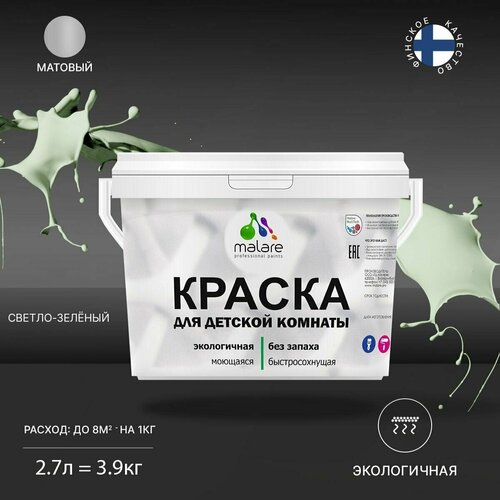 Краска акриловая Malare для детской комнаты для детской влагостойкая моющаяся матовая светло-зеленый 2.7 л 3.9 кг