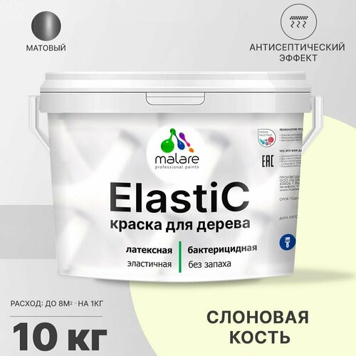 Краска Elastic для деревянных поверхностей, для внутренних и наружных работ, с антисептическим эффектом, матовая, слоновая кость, 10 кг.