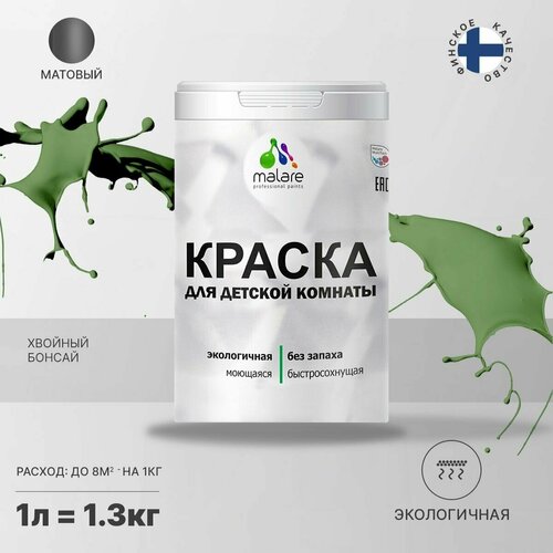 Краска Malare интерьерная для детской комнаты, для стен и обоев, для потолка, акриловая без запаха моющаяся матовая, хвойный бонсай (1л - 1.3кг)